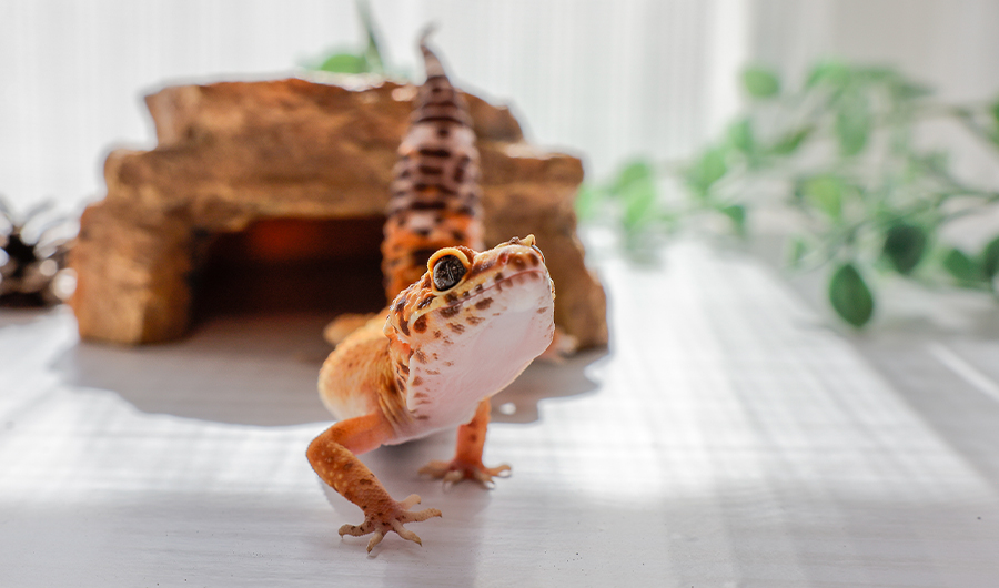 レオパは物陰に隠れて休む習性があるため、隠れる場所(シェルター)がないと強いストレスを感じます。
